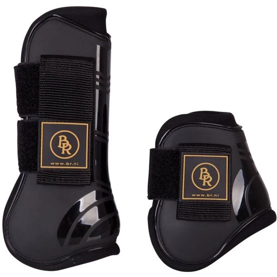 Set mit Sehnenschoner und Streichkappen, mit Neoprenfütterung und Klettverschluss mit Überschlag.