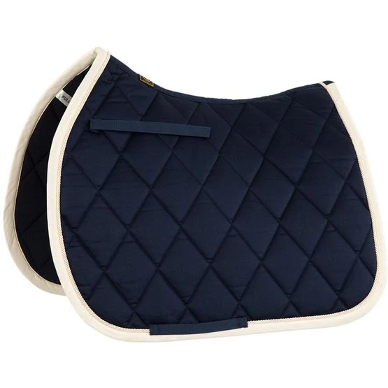 Die Schabracke ist mit einer oder zwei Zierkordeln dekoriert und es enthält eine Gurtstrupfenbefestigung mit Klettverschluss.