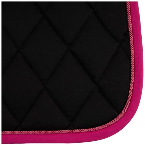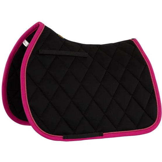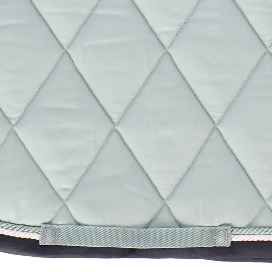 Die Schabracke ist mit einer oder zwei Kordelpaspeln verziert und enthält eine verstellbare Sattelschlaufe mit Klettverschluss.