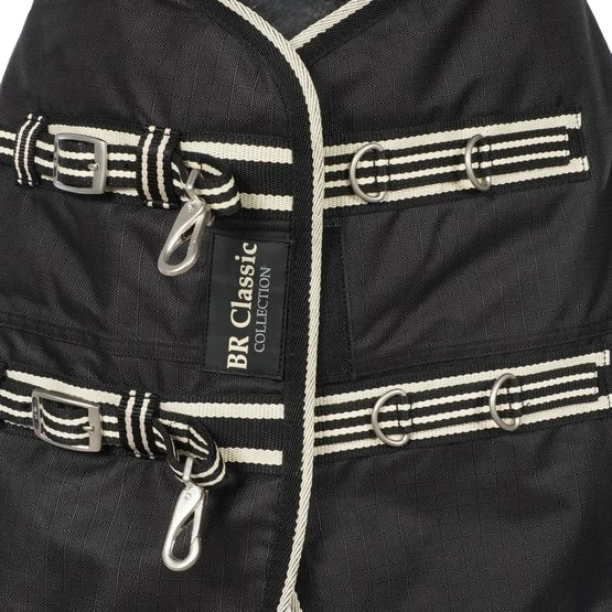 ? • Verstellbarer doppelter Brustverschluss mit Schnellverschlüssen und Klettverschluss