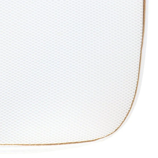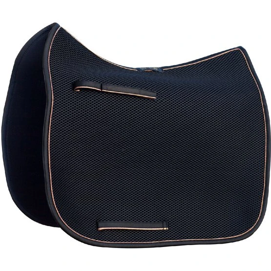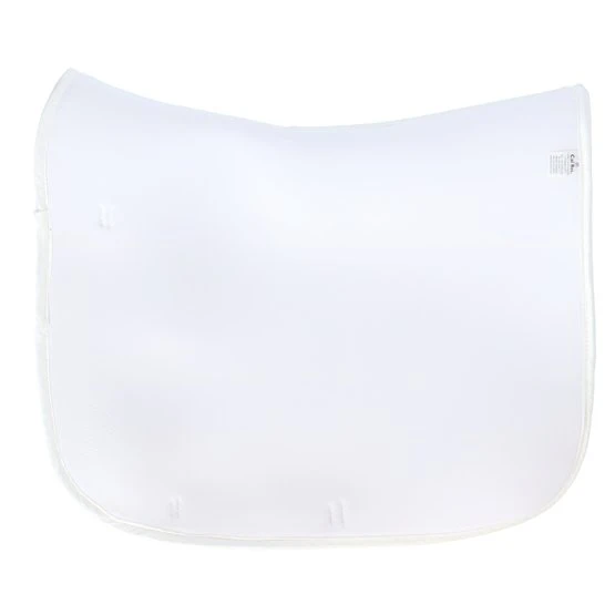 Das 3D-Abstandsmaterial besteht aus Polyesterfasern, die in horizontaler und vertikaler Richtung verwoben sind. Das macht das Material langlebig, belastbar und leicht. Durch die zwei Webrichtungen der Fasern entsteht eine offene Struktur, die sehr belastbar ist. Dadurch bietet es eine gute Druckverteilung und Stoßdämpfung. Ein Vorteil für Reiter und Pferd! Das Material passt sich dem Pferderücken an, springt aber ohne Druck in seinen ursprünglichen Zustand zurück. Dadurch bekommt das Pad keinen Abdruck vom Sattel und die Bewegungen des Pferdes werden gut unterstützt. Die am Pferd anliegende Innenschicht des Pads besteht aus weichen Fasern und ist somit angenehm für das Pferd. Die äußere Schicht ist etwas steifer, damit die Schabracke in Form bleibt und der Reiter gestützt wird.