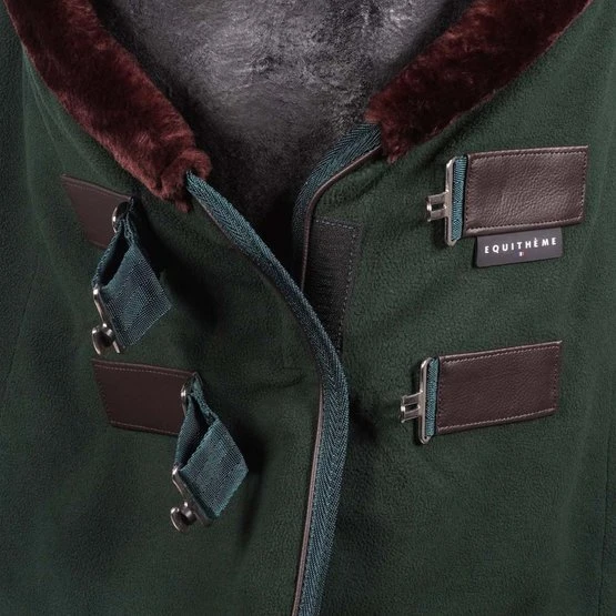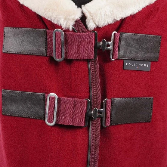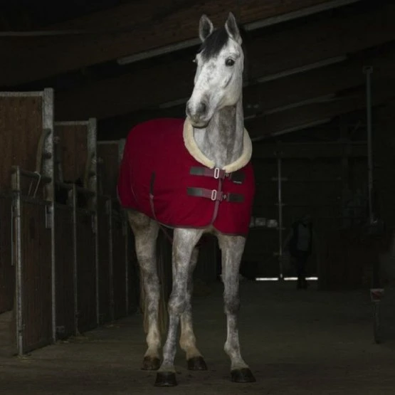 Die hochdichte Polarfleecedecke hat einen weiten Hals aus synthetischem Schaffell. Niedrige Kreuzbegurtung und Nylonbrust. Brustverschluss mit doppelt verstellbaren Herren-/Damenschnallen und Klettverschluss. Schwanzriemen. Komfortabel und robust, ideal für den Stall. Zusammensetzung: 100 % Polyester.