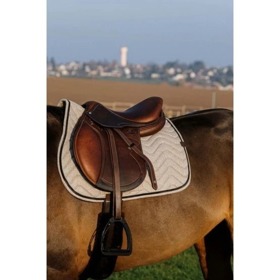 Schabracke aus 50 % Polyester und 50 % Wolle mit Satinstich.