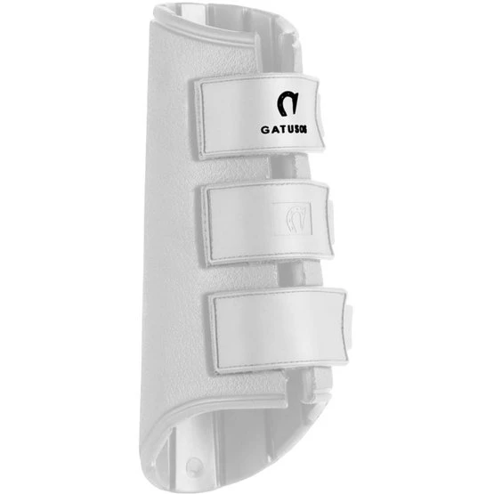 Gatusos Vordersehnenschoner Royal Modell. Paar professionelle Frontprotektoren aus innovativem, patentiertem Material EVA GUMFLY (Ethylenvinylacetat). Hergestellt aus einem einzigen Stück antibakteriellem, stoßdämpfendem Material, daher nahtlos, mit einer anatomischen Schale für eine hervorragende Passform und mit einem extra widerstandsfähigen Doppelklettverschluss. Dank des speziellen Materials sind sie leicht zu waschen und zu trocknen, sehr widerstandsfähig und langlebig.