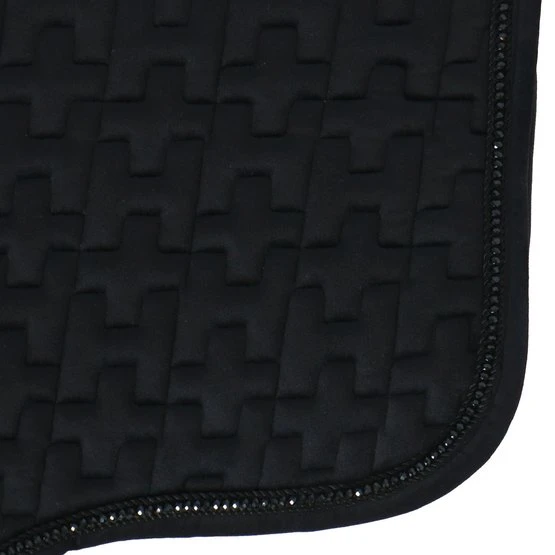Schabracke aus luxuriösem Samtstoff, mit Doppelkordel mit Kristallen dazwischen und einer Gurtschlaufe Material: 100% Polyester, Füllung 8mm Schaumstoff und 200gr Polyfill, Netzfutter