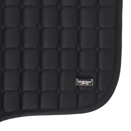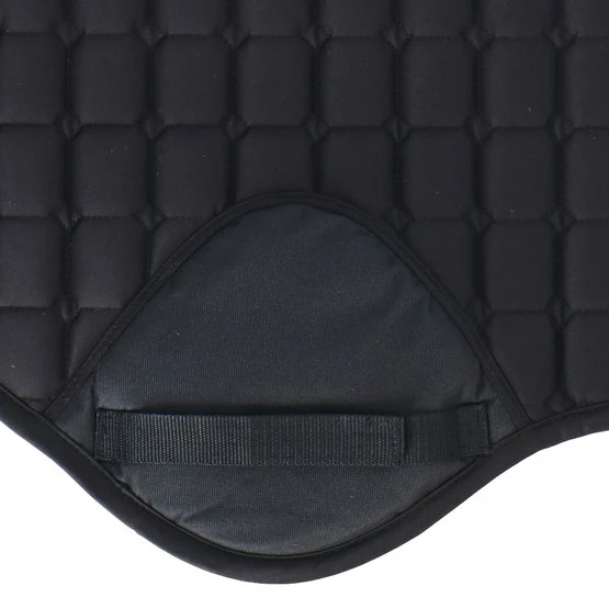 Sattelüberzug aus luxuriösem Hgh Density Twill-Material. Ausgestattet mit einer Gurtschlaufe und Klettverschluss an den Sattelschlaufen (zur Befestigung an den D-Ringen des Sattels). Dieser Sattelüberzug zeichnet sich durch eine hervorragende Passform unter dem Sattel und auf dem Pferderücken aus. Material: Außenseite: Hgh Density Twill (100% Polyester) Futter: Mesh
