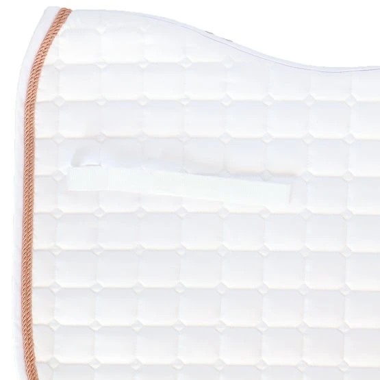 Sattelunterlage aus luxuriösem High Density Twill-Material. Ausgestattet mit einer Schnur und einer Glitzerbindung. Ausgestattet mit einer Gurtschlaufe und einem Klettverschluss an den Sattelschlaufen. Material: Außen: Hgh Density Twill (100% Polyester) Futter: Mesh