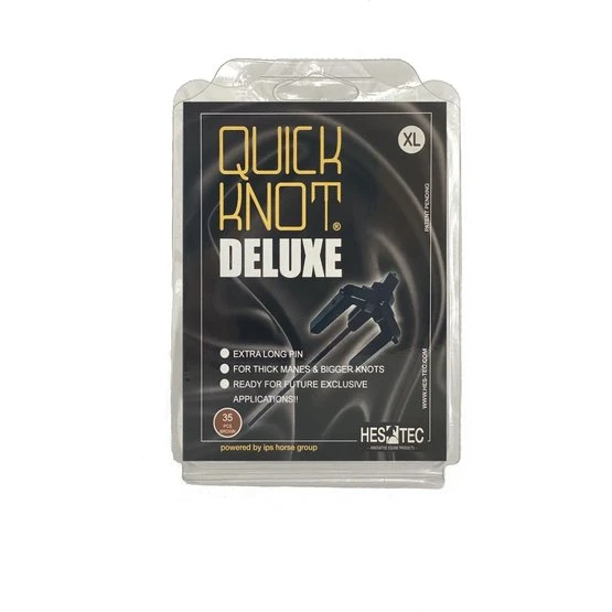 Quick Knot Deluxe® ist ein patentiertes Must-Have-Werkzeug für die schnelle und einfache Herstellung professioneller Knoten. Diese lassen sich dann mit der gleichen Leichtigkeit auch aus der Mähne entfernen.