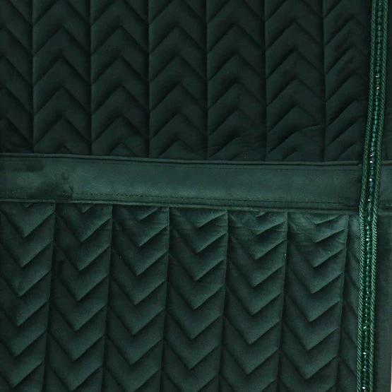 Die Außenseite der Schabracke besteht aus unserem beliebten und weichen Samtstoff mit Fischgrät-Naht. Der Kragen ist mit schicken Perlen verziert. Das Futter des Bezuges besteht aus einem Baumwoll-Polyester-Mix, der Schweiß gut aufnimmt und sehr atmungsaktiv ist.