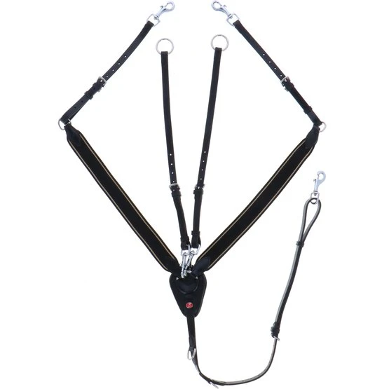 ● Geteilte, mehrfach verstellbare Martingalgabel zum Herausnehmen mit Karabinern