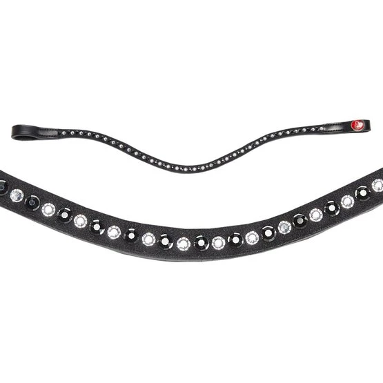 Das Reithalfter ist für eine besonders schonende Druckverteilung anatomisch geformt und weich unterpolstert. Somit werden empfindliche Nervenbahnen ausgespart sowie unangenehme Druckspitzen und Reibung auf dem Jochbein vermieden. Für Reiter, die eine Zäumung ohne Sperrriemen bevorzugen, lässt sich dieser spurlos entfernen. Trensenzaum Ilona ist wahlweise mit zwei verschiedenen Stirnbändern verziert mit Kieffer Ultrashine® Kristallen erhältlich.