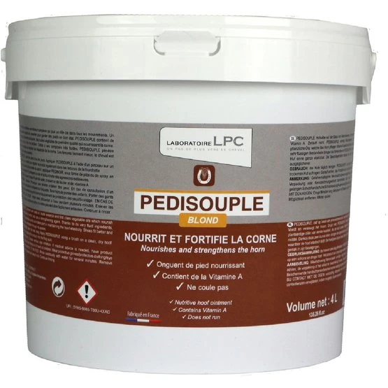 Vitamin A spielt die Rolle der Stärkung. Dank seiner sehr flüssigen Bestandteile zieht Pédisouple Blond schnell ein und hilft, die Elastizität des Horns zu erhalten. Die Ausstattung steht besser: Das Pferd fühlt sich wohler in seinen Gängen.
