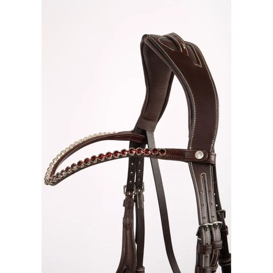 Alle Montar-Kristall-Stirnbänder können dank eines Montar-Druckknopfs auf jeder Seite auch während der Trense problemlos gewechselt werden.