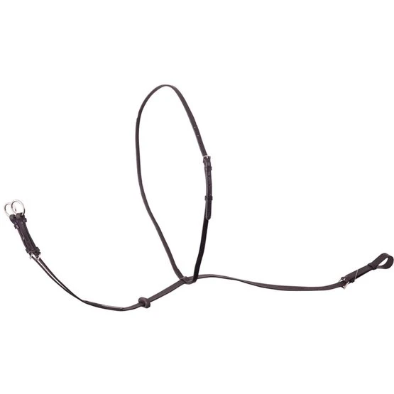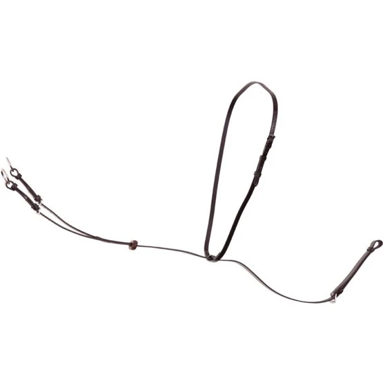 Ledermartingal mit verstellbarer Gabel, Gurtschlaufe, Halsriemen und Martingalstoppern aus Gummi. Das Martingal hat Edelstahlschnallen. Es ist eine Hilfe bei Pferden die sich zu sehr herausheben und damit keine Zügelverbindung mehr haben.