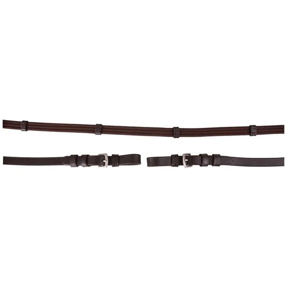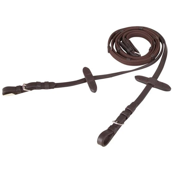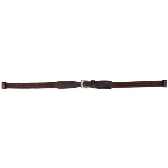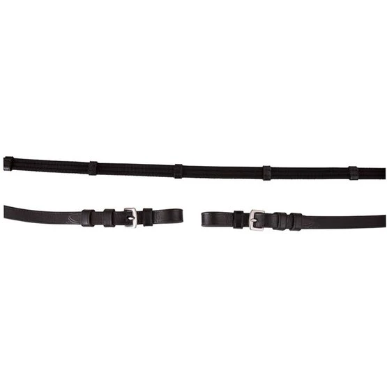 Gurtzügel (16 mm breit) mit Lederstegen und Martingalschiebern. Die Lederenden haben Edelstahlschnallen und sind 13 mm breit.