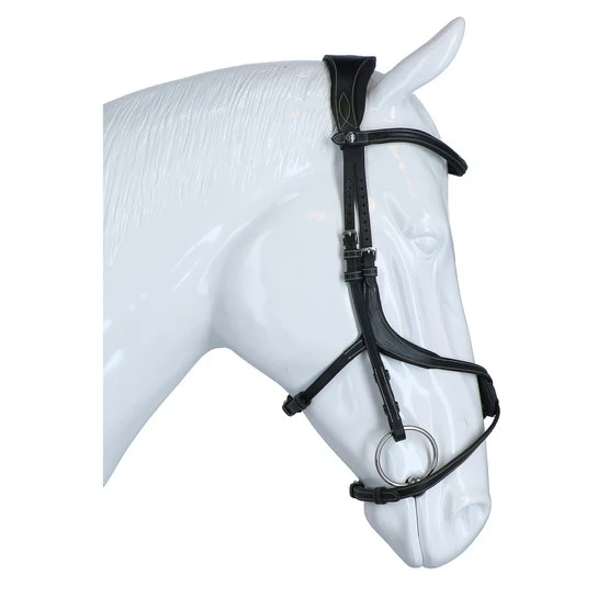 The browband has our new, convex PS-button with an extra sturdy clasp that keeps the browband in place and shapes the leather backward and down.
