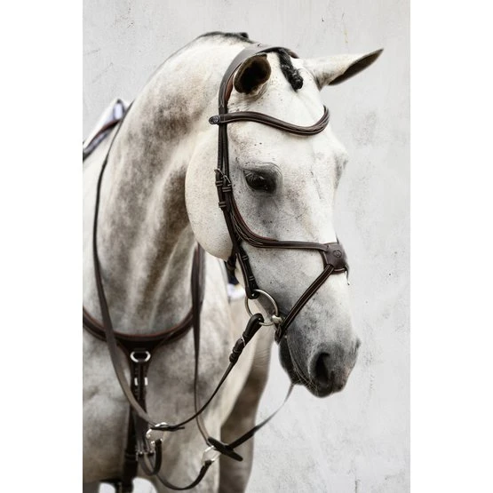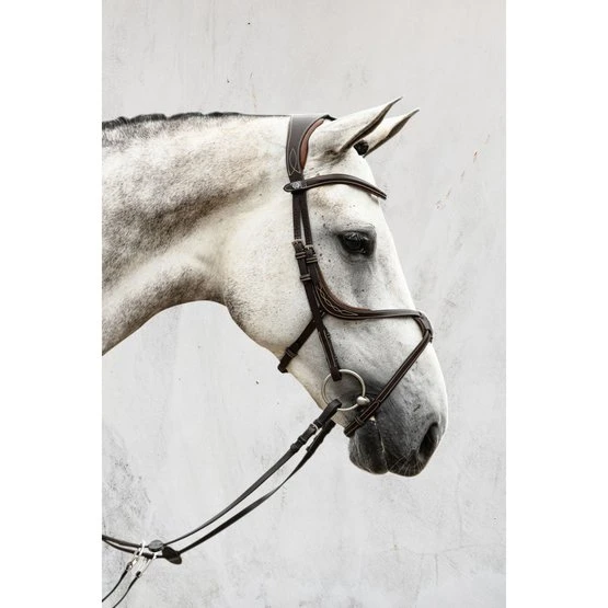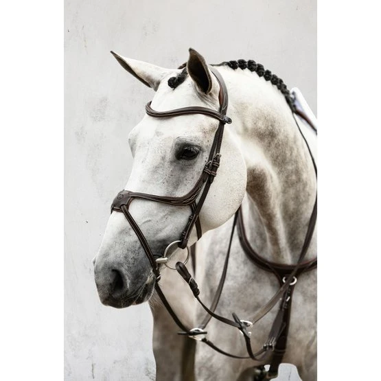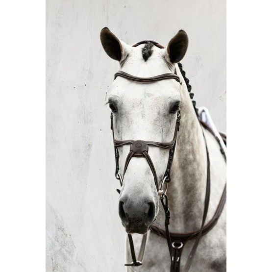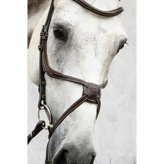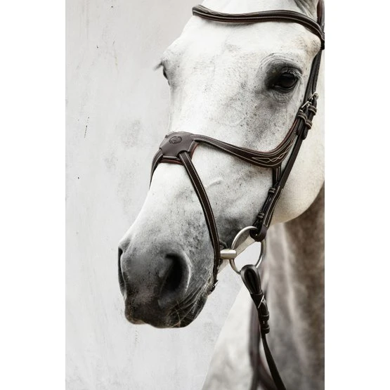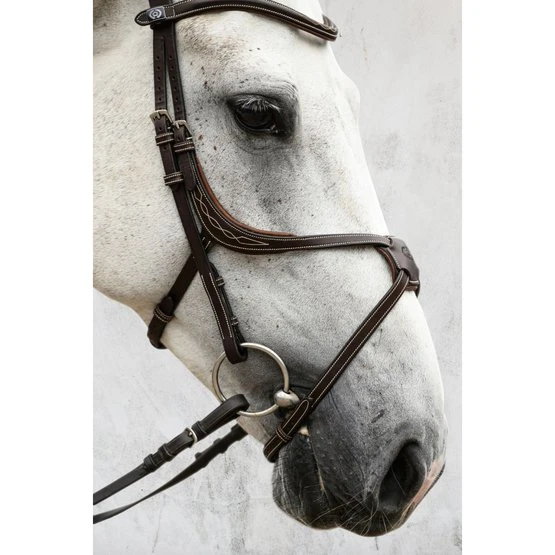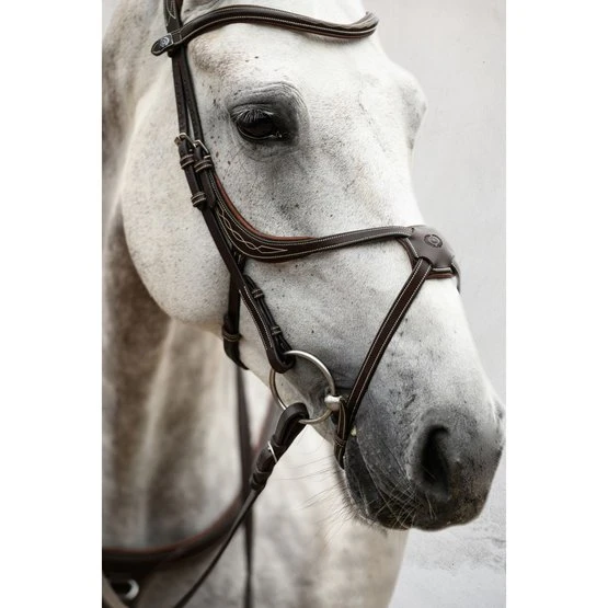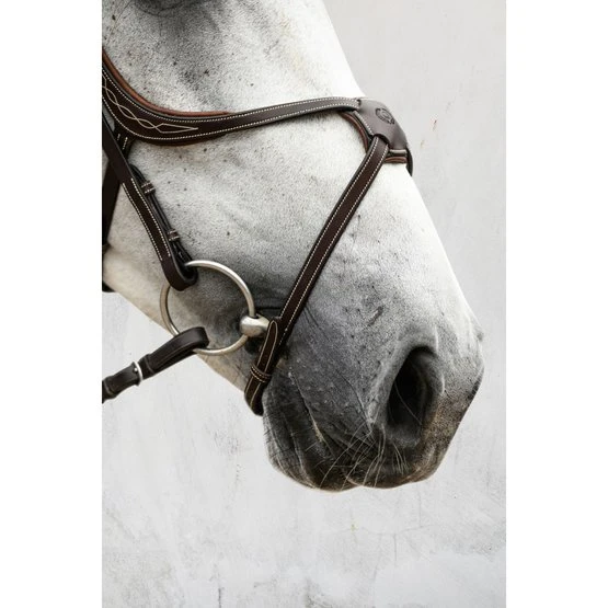 A bridle where you at first glance may think it has a classic figure-eight/mexican noseband, but when giving it a closer look discover small details that put the one of a kind bridle at a completely new level.