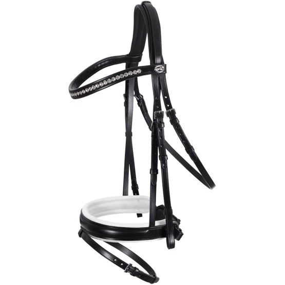 Ein Hingucker schlechthin – die Trense Madrid von Schockemöhle Sports! Durch das breite, kombinierte Spezialreithalfter und die großen Kristallnieten ist die