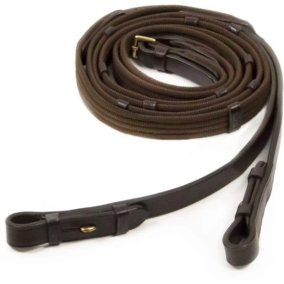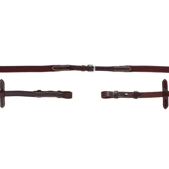 Klassischer GURTZÜGEL mit Zaumhaken aus 19 mm breitem Gurtmaterial mit Lederstegen. Der Zügel verfügt über Martingalstopper.