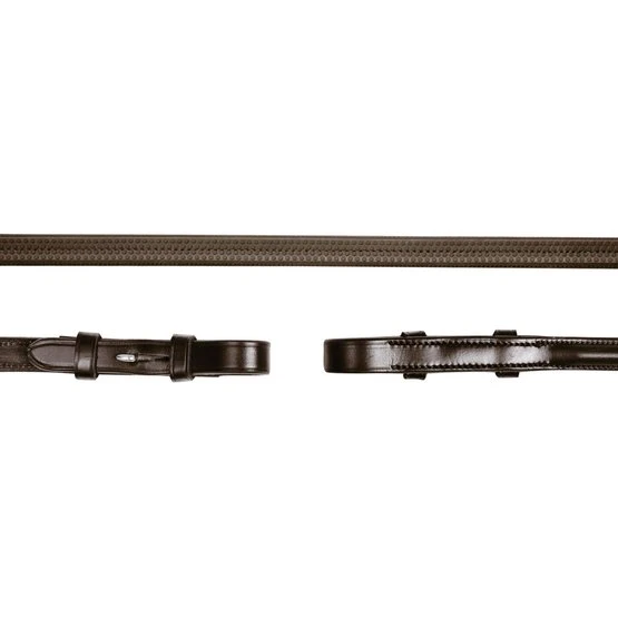 Der JUMPER GUMMIZÜGEL hat ein schlichtes Design doch die hellen Kontrastnähte an den Zügelenden machen ihn zu einem Hingucker. Das 17 mm breite Gummimaterial liegt gut in der Hand. Der Zügel hat Martingalstopper und klassische Schnallenenden.
