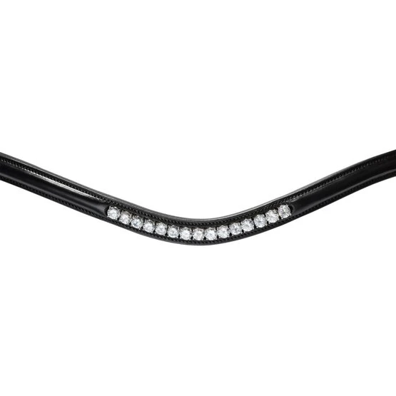 – Englisch kombiniertes Reithalfter – Innovativer Schnitt des Reithalfters – Genickstück mit zusätzlicher Ohrenfreiheit und Öffnung in der Mitte um keinen Druck auf dem Nackenband zu haben- Seitlich positionierter Sperrriemen für mehr Nüsternfreiheit und freiere Atmung- Sperrriemen herausnehmbar- Am Nasenband befestigte Backenstücke für eine ruhigere Gebisslage- Geschwungenes Stirnband mit edler Strasskette in der Mitte- Nasenriemen und Genickstück weich gepolstert- Edelstahlbeschläge- 19 mm Gurtzügel