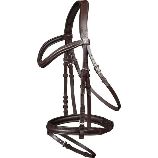 – Englisch kombiniertes Reithalfter- Anatomisch geformtes Genickstück- Geschwungenes Stirnband- Nasenriemen, Stirnband und Genickstück weich unterlegt- Edelstahlbeschläge- 19 mm Gurtzügel