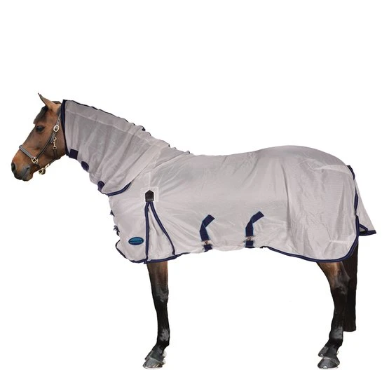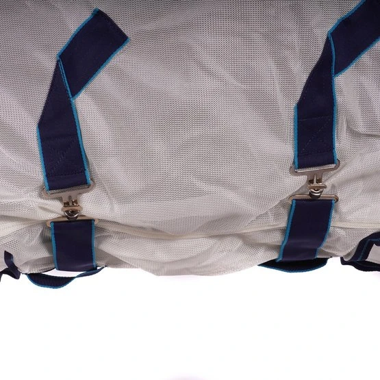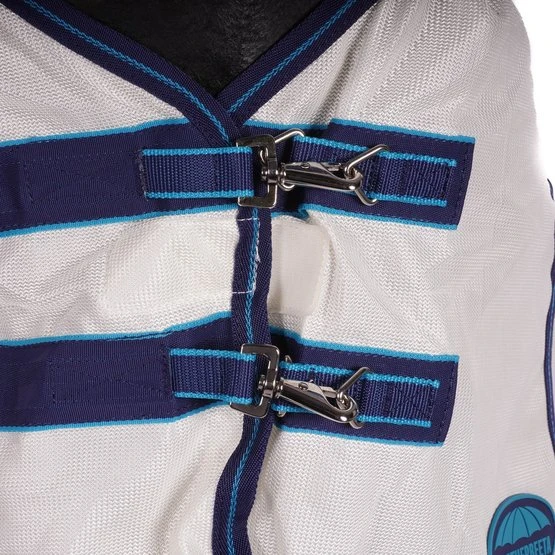 Der Weatherbeeta Comfitec Airflow II Combo-Hals besteht aus weichem, strapazierfähigem Polyesternetz und verfügt über eine neue Ultra-Bauchklappe und eine vollständig umwickelte Heckklappe für erstklassigen Schutz. Darüber hinaus verfügt die Decke über einen elastischen Einsatz am Widerrist für zusätzlichen Komfort beim Weiden. Der Ezi-Clip-Frontverschluss und der traditionelle Seitenzwickel für natürliche Bewegung vervollständigen die Decke. Die Schultern sind weich mit gepolstertem elastischem Nylonmaterial gepolstert. Die Mähne und die Heckklappe sowie das Gummiband sind ebenfalls mit Nylonmaterial ausgekleidet. Die Decke hat verstellbare und abnehmbare Beinriemen. Darüber hinaus bietet die Decke 70% UV-Schutz.